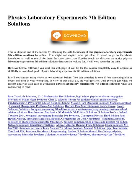 Free PDF Physics laboratory experiments 7th edition solutions Library Binding BookBoon